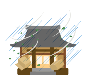 - 強風で境内の古木が倒れて、隣接する屋根を壊してしまった!